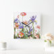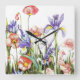 Relógio Quadrado Iris e Flores de Papoila Aquarela Floral