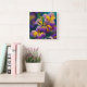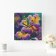 Relógio Quadrado Iris Folhas plorais roxas e azuis-douradas