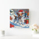 Um Jack Russell espiritado cai pela cena de neve, vestindo um chapéu de Natal vermelho festivo. O vivo momento de inverno captura a energia lúdica da raça e a personalidade ousada enquanto celebra a magia alegre da época de férias. Um cheio design de alegria festiva.