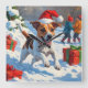 Relógio Quadrado Jack Russell correndo em neve com chapéu de Natal