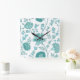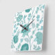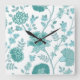 Relógio Quadrado Jacobean Floral Lg Patterno Teals em Branco