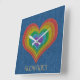 Descubra um relógio quadrado muito original com um belo tecido de denim azul, sobreposto com 6 corações aninhados de tamanho decrescente no mesmo tecido com belos pontos diagonais. Os corações têm as seis cores do arco-íris (vermelho, laranja, amarelo, verde, azul, roxo). Eles têm um efeito 3D muito legal e a textura dos jeans denim é realmente incrível. Adicionamos um nome personalizável no fim do relógio, escrito em uma fonte de ouro na moda moderna. Substitua o nome predefinido pelo seu (ou pelas suas iniciais do monograma) ou sinta-se à vontade para o eliminar. Este design é amigo do LGBTQ+.