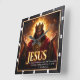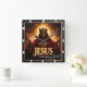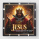 This powerful and majestic design captures the theme of Jesus as the King of Kings and Lord of lords. The artwork, featured on a square wall clock, displays the central figure of Christ wearing a regal crown and a rich red and gold robe. He stands against a dramatic background of golden light and clouds, with his arms raised in a commanding gesture. The design emphasizes his divine sovereignty and glory, reinforced by the bold word "JESUS" at the bottom. The powerful biblical quote from 1 Timothy 6:15 is included: "He who is the blessed and only Sovereign, the King of kings and Lord of lords." This incredible image is a spectacular tribute to faith and devotion, serving as an inspiring piece of religious decor. This high-quality square clock is a perfect centerpiece for any faithful home or sacred space.