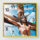 Um adorável relógio de Jesus cristão com Jesus pregando na cruz com árvores e céu azul. Surreal Fantasy Art AI Gerou imagens JESUS