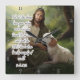 Esta cara do relógio tocante mostra Jesus Cristo segurando um carneiro, sentado em um lugar sereno natural. A frase profunda de "Isaiah 53:6" diz: "Todos nós, como ovelhas, perdemos, cada um de nós se voltou para o nosso próprio caminho; e o LORD colocou-lhe a iniquidade de todos nós". Números pretos marcam as horas, misturando sacrifício divino com um lembrete diário de resgate e graça.