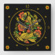 Relógio Quadrado Khokhloma ~ Arte Folar Russa ~ Flores Vermelhas/Do