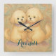 This is a soft illustration of two fluffy dogs sitting close together in blended, warm pastel colors denoting friendship and love.