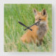 Relógio Quadrado Kit de Raposa Vermelha na relva perto do den