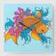 Relógio Quadrado Koi and Flowers