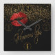 Relógio Quadrado Lábios vermelhos glamourosos e Confetti Dourado