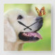 Relógio Quadrado Labrador E Travesseiro decorativo De Borboleta