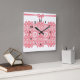 Relógio Quadrado Lacy arco branco elegante, rosa-sem-coloração