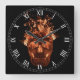 Relógio Quadrado Laranja Flaming Skull Square Roman Numerals Clock