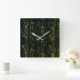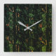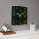 Relógio Quadrado Latido de árvore sob vidro martelado verde