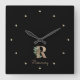 Relógio Quadrado Letra R Monograma Botânica Elegante