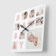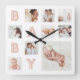 Mostre as fotos do seu bebê com o nosso relógio branco de colagem de na moda e fotos modernas do bebê. O design apresenta um layout de colagem de nove grades de fotos para mostrar as fotos especiais do seu bebê. "Bebê" é apresentado na design de letra de bloco rosa moderna dentro do esquema de grelha. Uma manutenção especial para mostrar no berçário do seu bebê.