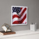 Bandeira americana com adaptação silhueta da famosa fotografia da Segunda Guerra Mundial da Batalha de Iwo Jima, onde nossas tropas ergueram a bandeira dos Estados Unidos. Relógio de parede militar quadrado com estrelas e riscas em vermelho patriótico, branco e azul com números brancos.