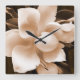 Relógio Quadrado Leve branca Magnolia Sépia Flores Fundo Preto