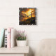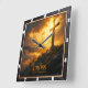This powerful and majestic design captures the theme of the Light of Salvation—the divine hope and guidance offered through Christ. The artwork, featured on a square wall clock, displays a massive, rugged stone cross standing monumentally on a mountain summit. The cross is silhouetted against an intense golden-orange glow and dramatic sunrays that illuminate the mountainous landscape below, symbolizing the light conquering darkness and ignorance. The gold words "THE CROSS" are prominently featured near the base of the design. The core message of Christian faith is quoted from John 8:12: "I am the light of the world." This incredible image provides a spectacular visual representation of faith, serving as an inspiring timepiece and striking centerpiece for any faithful home or office, symbolizing eternal guidance and hope.