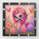 Relógio Quadrado Lindo Borboleta Unicórnio Rosa