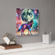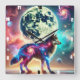 Relógio Quadrado Lobo Cósmico com Elementos Galácticos e Lua