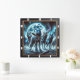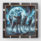 Relógio Quadrado Lobos Místicos no Brilho Azul da Floresta Lua
