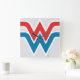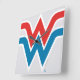 O logotipo clássico da Mulher Maravilha em vermelho, branco e azul, com as listras esquerdas esticadas para efeito.