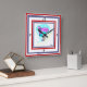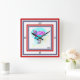 Este desenho mostra uma garota vestida com seu terno de neve azul e rosa. Um chapéu e óculos combinam com seu terno de neve. Ela está a passar neve por um caminho de neve. No fundo está uma montanha de neve com um céu azul atrás dela. Foi utilizado um quadro vermelho e azul, juntamente com um fundo branco, para representar os EUA. Excelente forma de apoiar os EUA durante os jogos.