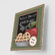 Um pulso de disparo de parede bonito da cozinha com maçãs do país, torta de maçã e um conselho de giz.