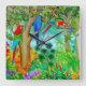 Relógio Quadrado Macaw Parrot Jungle Art Wall Clock