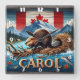 Relógio Quadrado Madeira rustica, castor canadense, oceano