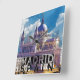 Souvenir mostra uma visão icônica do Palacio Real e Catedral de la Almudena em Madrid, Espanha.