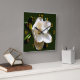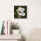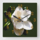 Ver passar o tempo será um prazer com esse relógio com uma grande floração do sul da Magnólia colocada sobre um fundo verde escuro com algarismos dourados. As pétalas cerosas da flor são um branco macio e cremoso e as folhas são um verde escuro e rico.