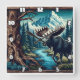 Relógio Quadrado Maiestosa Moose por Rio na Paisagem de Montanha