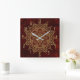 Relógio Quadrado Mandala Vermelho Vinho Fundo & Glamour Dourado Mod