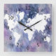 Relógio Quadrado Mapa Mundial Rosa Azul Design 65