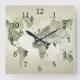 Relógio Quadrado Mapa Mundial Verde Claro Design 123