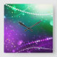 Relógio Quadrado Mardi Gras Festivo Purple Background