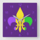 Mardi Gras Green Yellow Purple Fat Terça-feira Carnaval do Partido do Carnaval Relógio de Parede Quadrado com Fleur-de-Lis