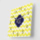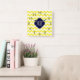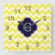 Relógio Quadrado Marinho Quatrefoil Azul Quevron Amarelo Monograma