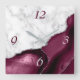 O elegante mármore branco moderno e o agato vermelho-borrifado aparado com falso brilho prateado combina-se neste luxuoso relógio de parede quadrada. Os números 3 e 6 aparecem em cinzas prateadas claras sobre o fundo agado, enquanto os números 9 e 12 aparecem em burguesia escura no mármore branco.