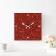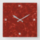 Relógio Quadrado Mármore Vermelho Elegante com Veias Brancas