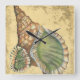 Se você não pode ir à praia hoje, pegue esta imagem clássica do estilo desta única concha verde e marrom hoje! Esta concha perto do oceano é cercada por areia quente nesta pintura e excelente em qualquer produto náutico.
