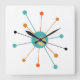 Relógio Quadrado Meio século de Starburst da Era Atômica Teal Orang