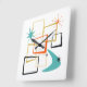 Adicione essa mistura de diversão e cor à sua parede com este fabuloso relógio de parede quadrado meio século atômico! Este design apresenta quadrados abstrato, estereótipos e um bumerangue nas cores laranja, turquesa, creme, ouro e preto...tão engraçado!