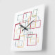 Este relógio moderno do século médio desagradável apresenta quadrados e retângulos vermelho escuro, azul claro, verde suave e abstrato amarelo. Ele é destacado por quadrados e retângulos abstrato preto finos. Adicione uma pop de diversão retrógrada à sua decoração!