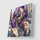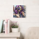 Relógio Quadrado Moça Abstrato Bonito Colorida com Cabelo Roxo