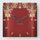 Relógio Quadrado Modern Gold Red Floral Wall Clock
