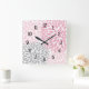 Relógio Quadrado Moderno Dahlia flores rosa e cinzas de cinza