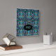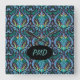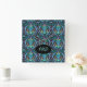 Relógio Quadrado Moderno Damask Art Deco Black Turquoise Blue Name